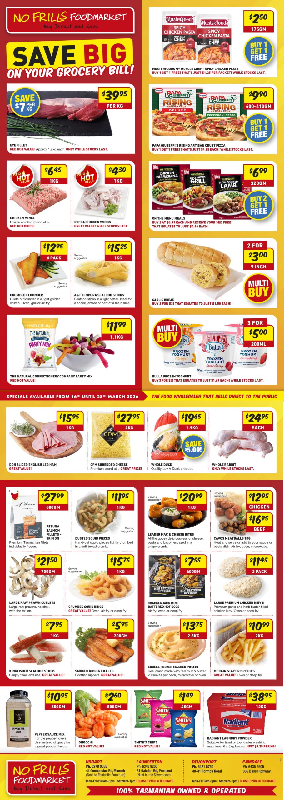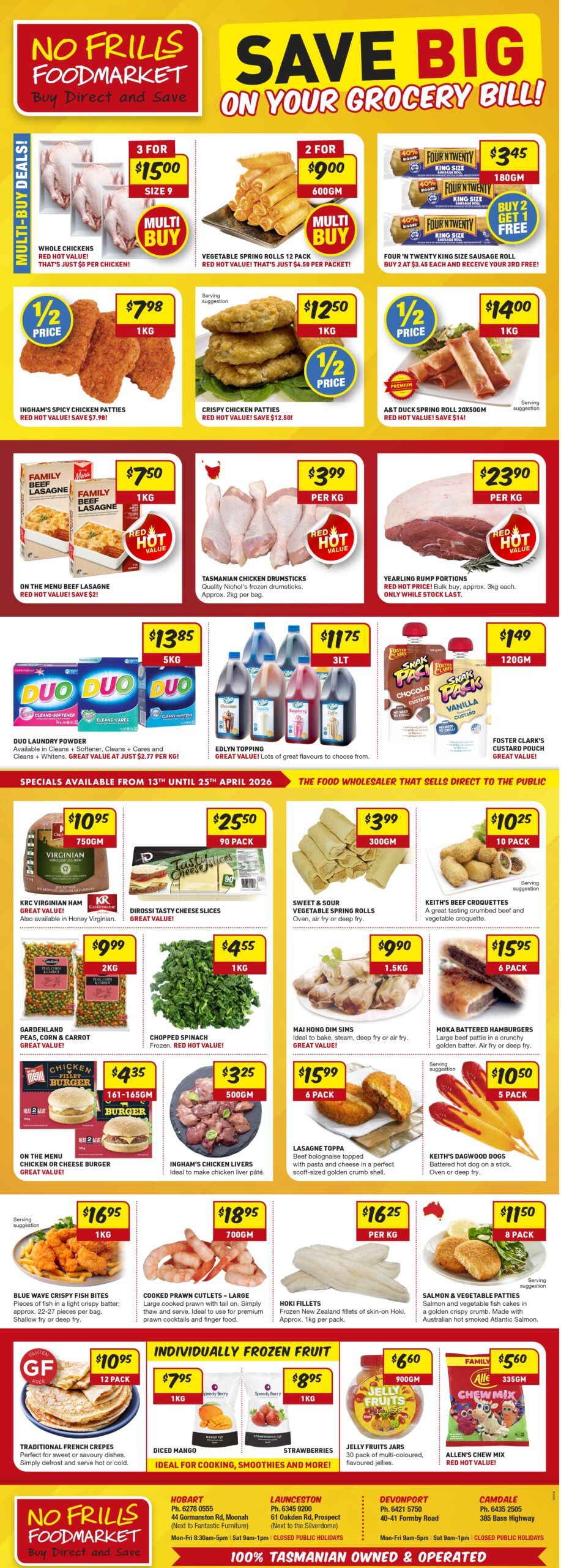 No Frills Foodmarket is a Tasmanian owned and operate family business. By shopping with us you are supporting local communities and local families – all while saving money!